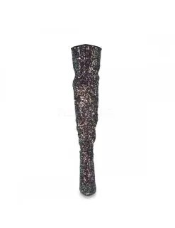 Pleaser USA Shoes Cuissarde Talons Aiguilles Noir Pailletée Moulante Courtly Pleaser