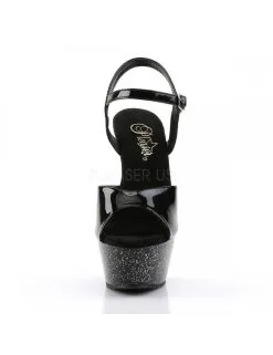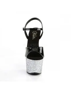 Pleaser USA Shoes Sandales Noir Vernis Haut Talon Plateforme Pailletée Argent Pleaser