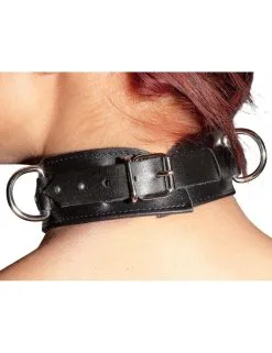 Collier Cuir Noir Rembourré Et Anneau ZADO
