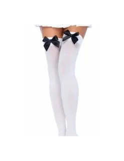 Bas Opaques Nylon Blanc Et Noeud Noir LEG AVENUE