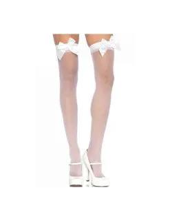 Bas Blanc Résille & Gros Noeud LEG AVENUE