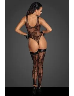 Body Dentelle Rose Et Voile Noir CHILIROSE