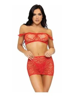 Ensemble Floral Rouge Coeurs LEG AVENUE