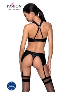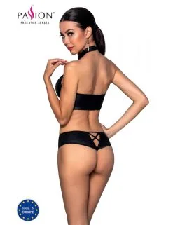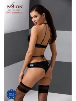 Passion Lingerie Ensemble Cuir Amanda 3 Pièces Noir Passion