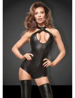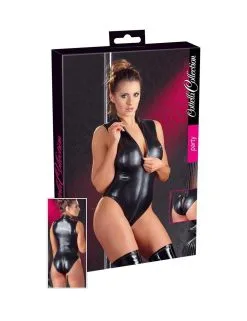Body Wetlook Décolleté Zip Coquin Noir Handmade