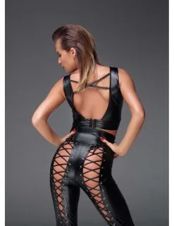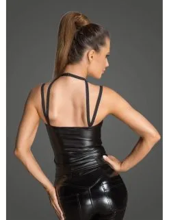 Top Noir Wetlook Décolleté Laçage Sexy Noir Handmade