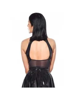Top Noir Wetlook Zip Argenté Erotique Noir Handmade