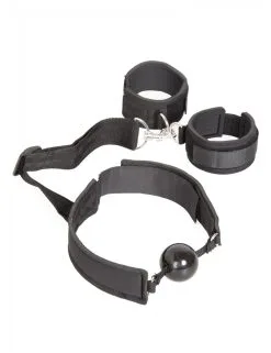 Les poignets sont conçus Ă partir du mĂŞme matĂ©riau rembourrĂ© que la sangle du bâillon et peuvent ĂŞtre retirĂ©s Ă l’aide de la fermeture velcro.