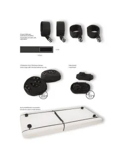 L’ensemble contient 2 sangles longues, 1 ceinture et 4 menottes (menottes et chevilles).