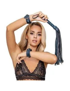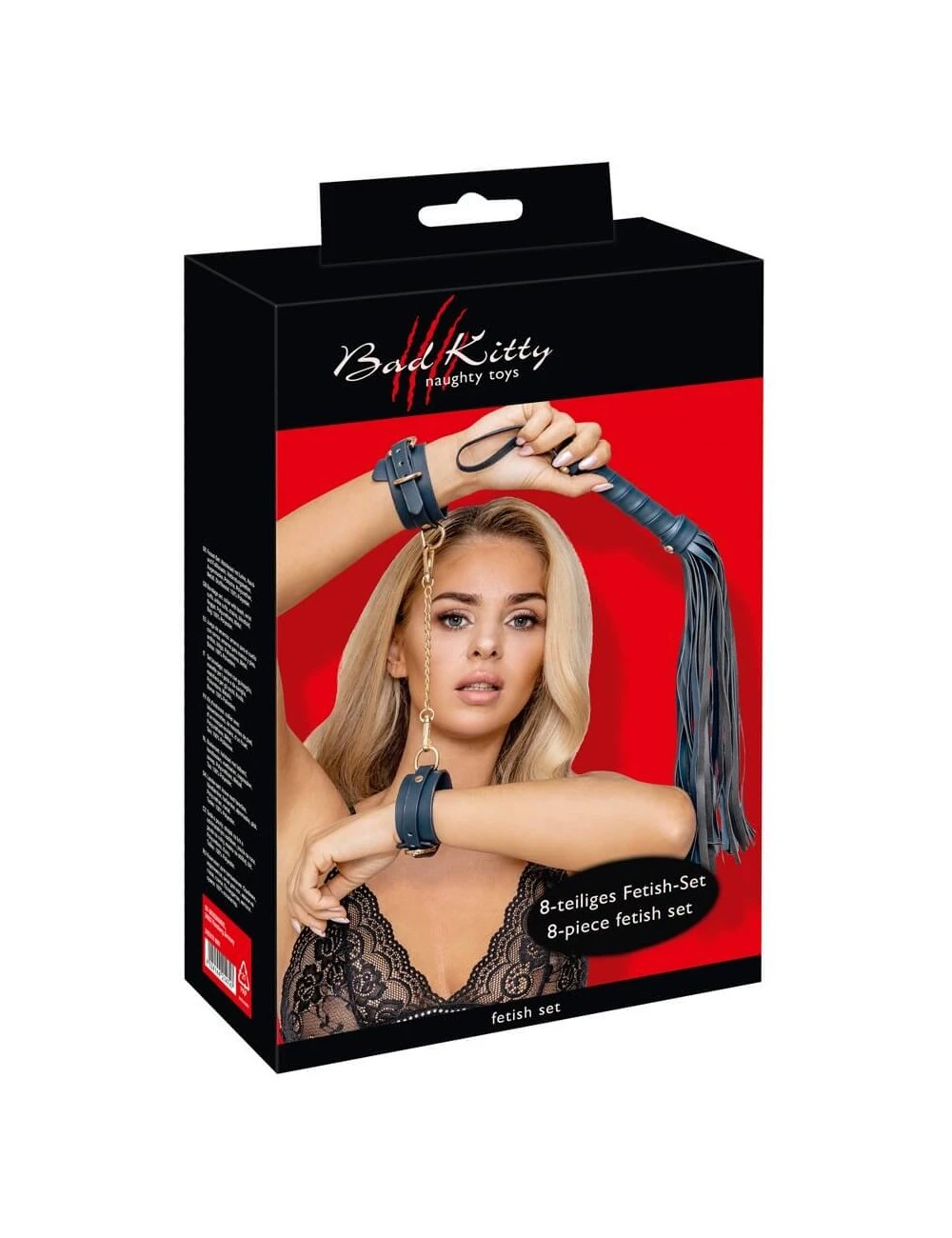 . L’ensemble se compose de 1x masque pour les yeux, 1x manchette de cou, 1x laisse, 1x mini fouet, 1x menottes et 1x manchette de cheville.