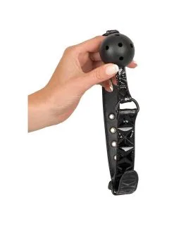 Bâillon composĂ© d’une balle dotĂ©e de trous pour faciliter la respiration.
