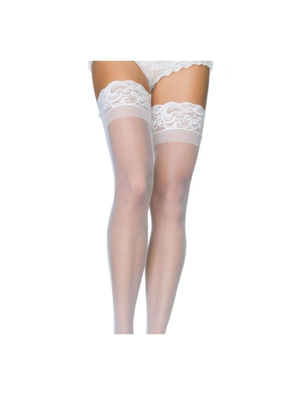 Féminin et élégant cette paire de bas blanc autofixant subliment vos jambes très simplement et tiennent parfaitement en place.