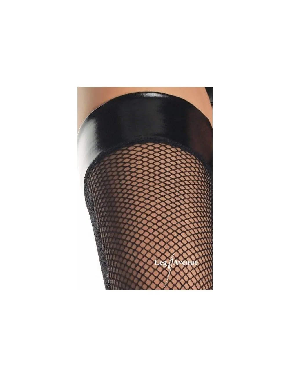 Très jolie paire de bas en duo de matière très sensuelle résille et jarretières en vinyle.