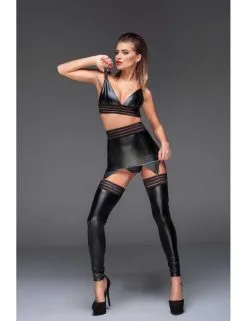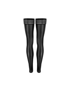 Bas wetlook noir dotĂ©es d’une superbe jarretière siliconĂ©e en transparence