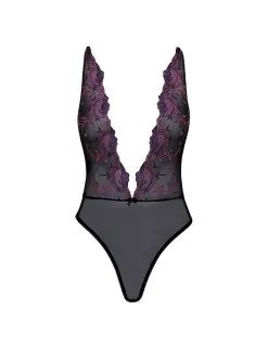 Beaucoup de délicatesse et de sensualité pour ce body qui révèlera votre silhouette avec sa dentelle transparente avec motifs et son voile associé. Une douceur sur la peau.