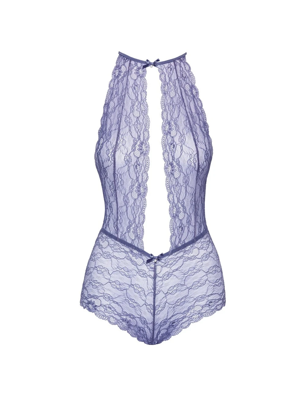 Une douceur sur la peau avec ce body charmant confectionné de dentelle florale dans une couleur harmonieuse de lavande.