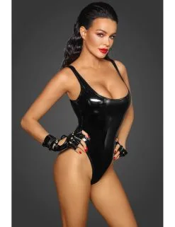 Sublime body échancré en vinyle noir brillant.