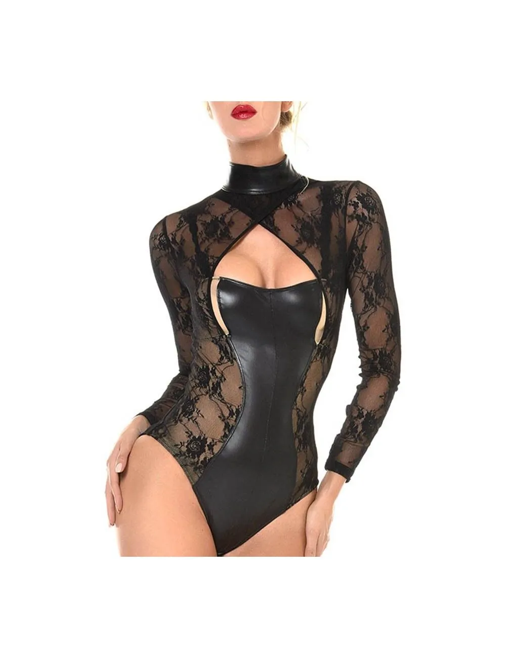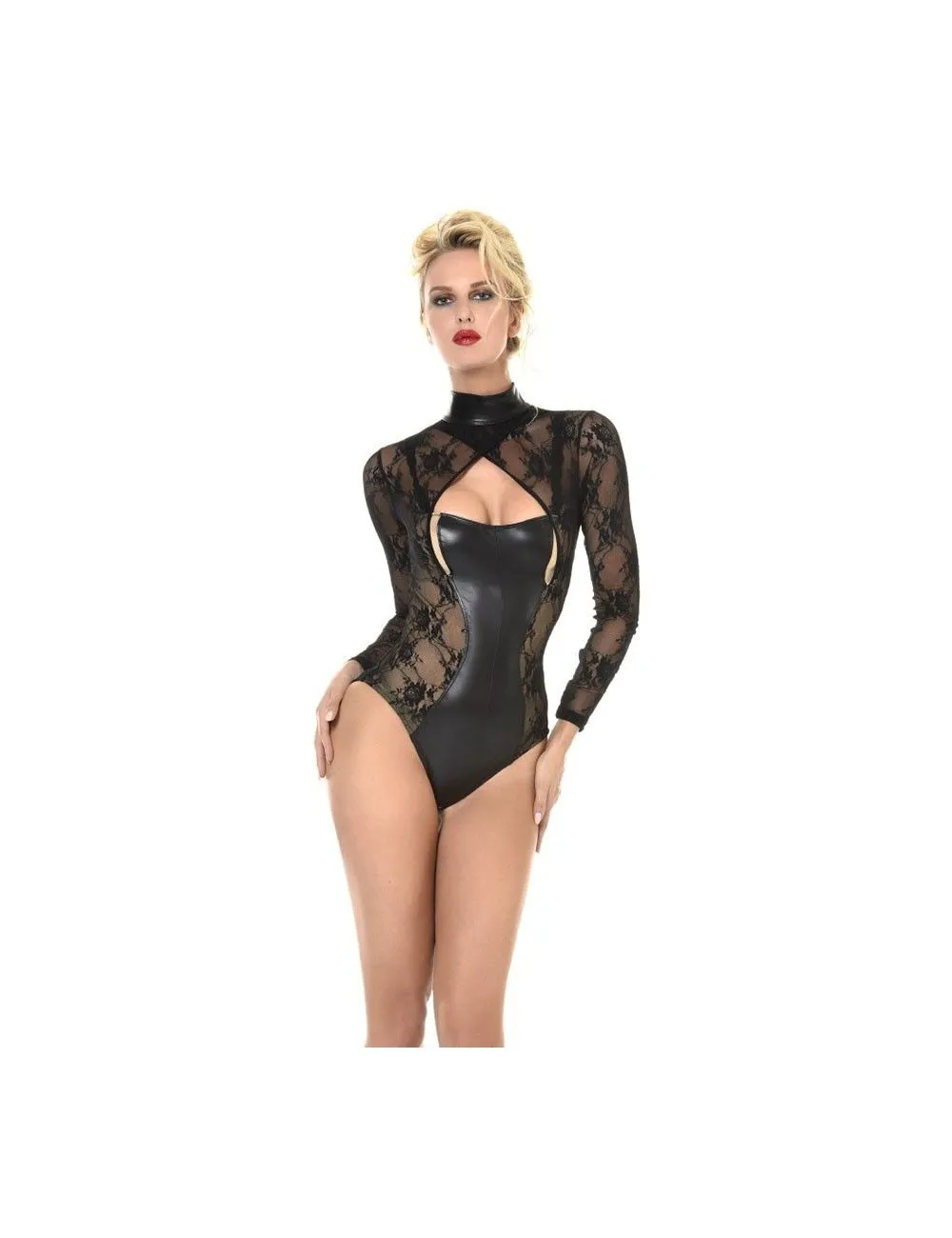 – Poitrine, ventre et dos wetlook dans une coupe échancrée