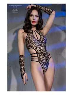 – Body confectionnĂ© avec tissu extensible doux motif lĂ©opard