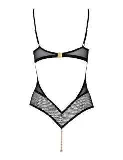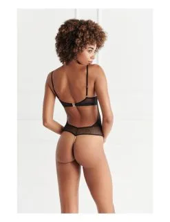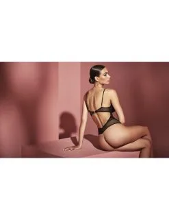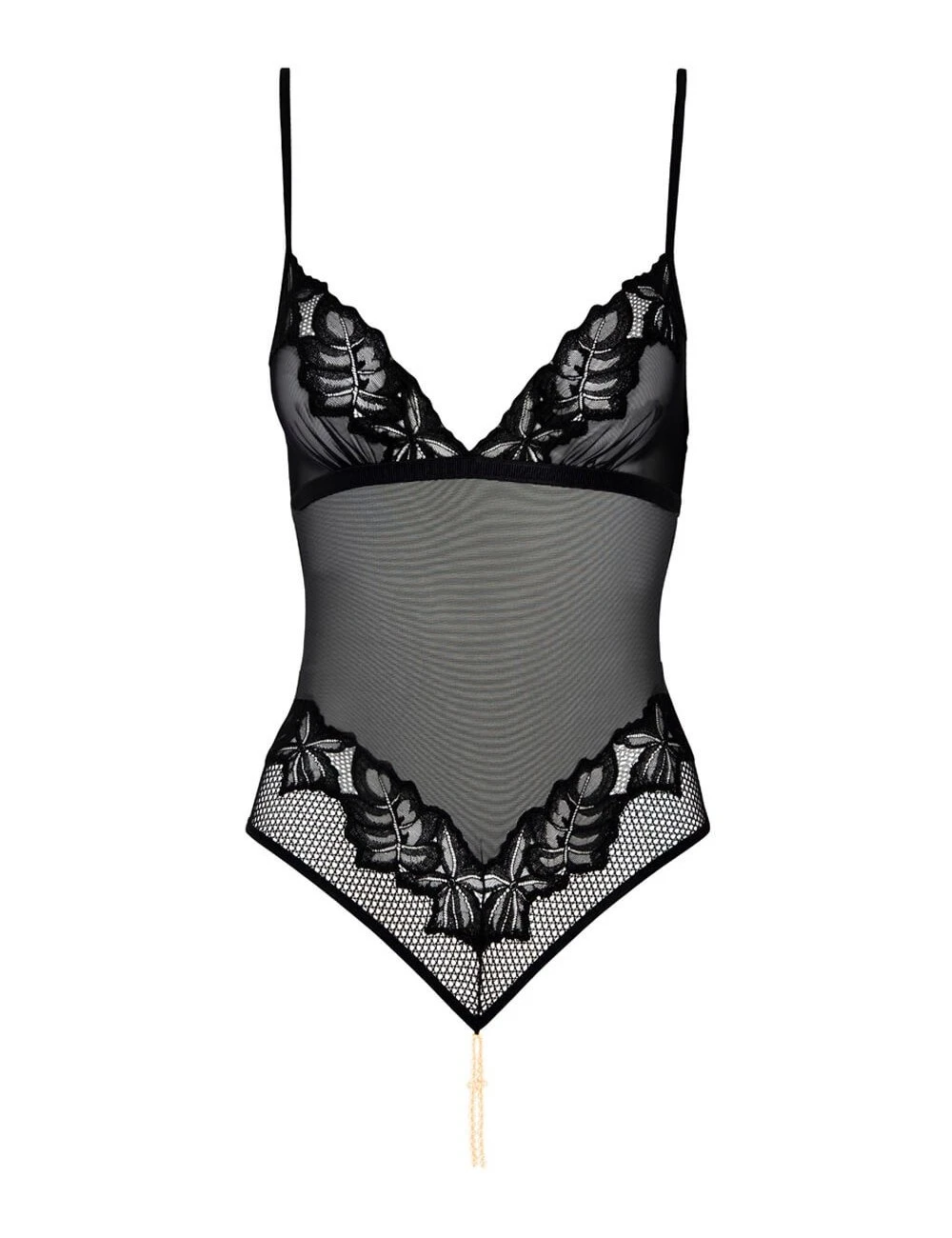 Body réalisé en dentelle et tulle avec des effets de transparence, qui allie une coupe classique sur le devant et audacieuse sur le derrière.