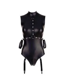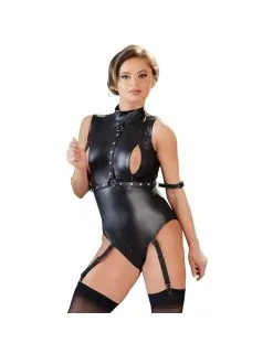 Body de couleur noir wet look avec zip d’ouverture sur la poitrine.