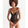 Ce body possède une coupe échancrée sur les côtés, un joli décolleté plongeant avec de la dentelle et des bonnets avec armatures de soutien.