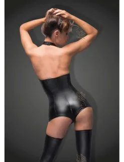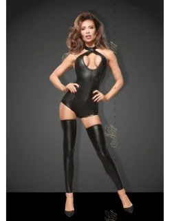 Magnifique body wetlook noir avec dos nu pour le plus grand plaisir des yeux.