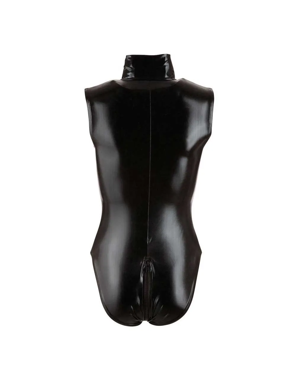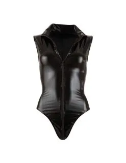 Body dans une maille en wetlook de couleur noir avec zip double sens partant du décolleté et terminant en bas du dos.