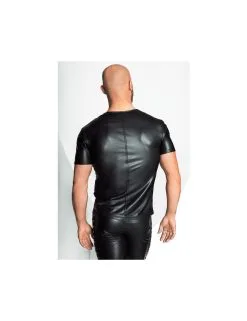 Haut manches courtes en vinyle avec large empiècement de tulle transparente.