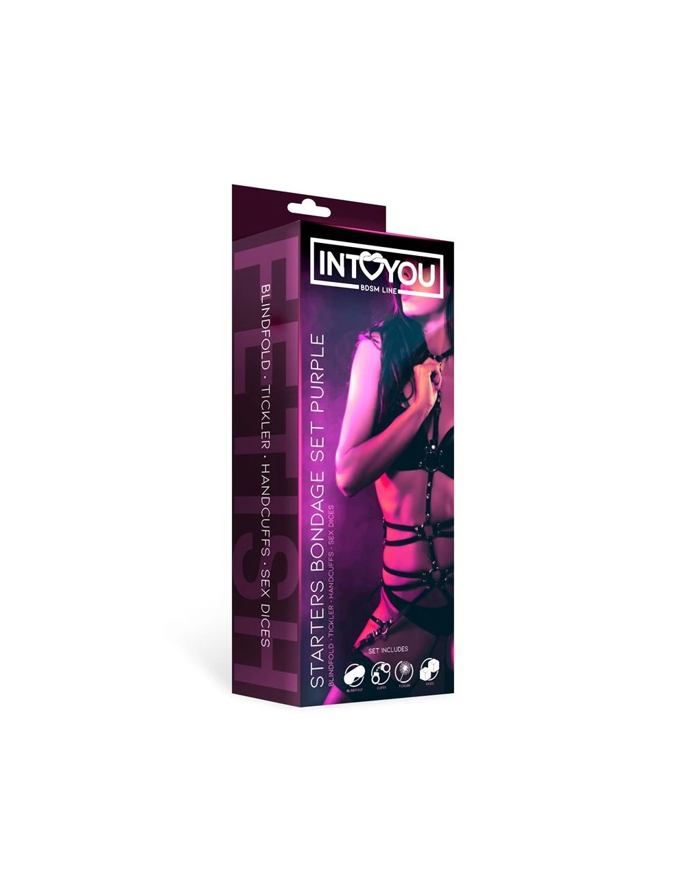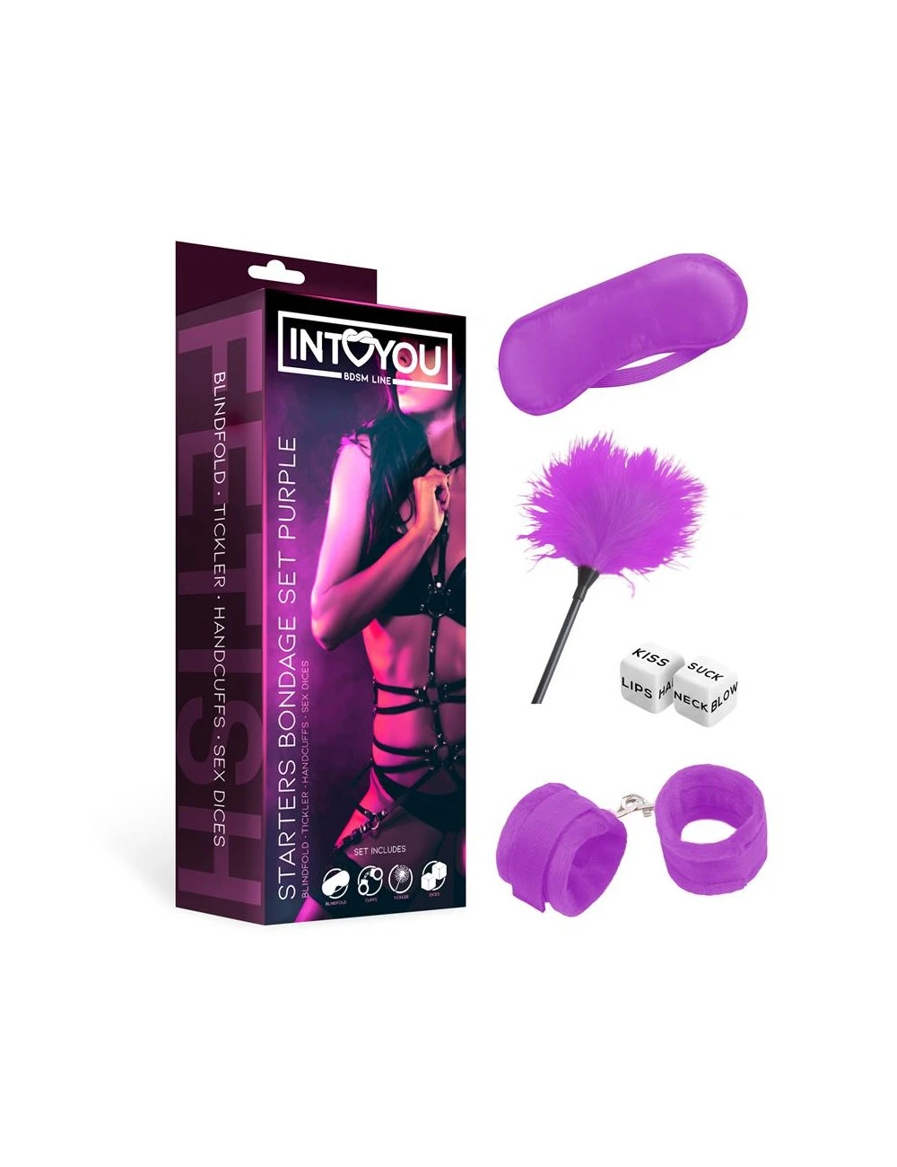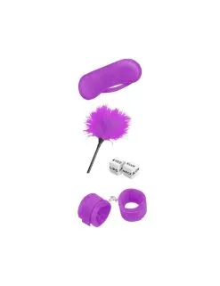 Coffret parfait pour démarrer votre initiation bondage avec accessoires d’attache et jeux de caresses dans un joli coloris violet.