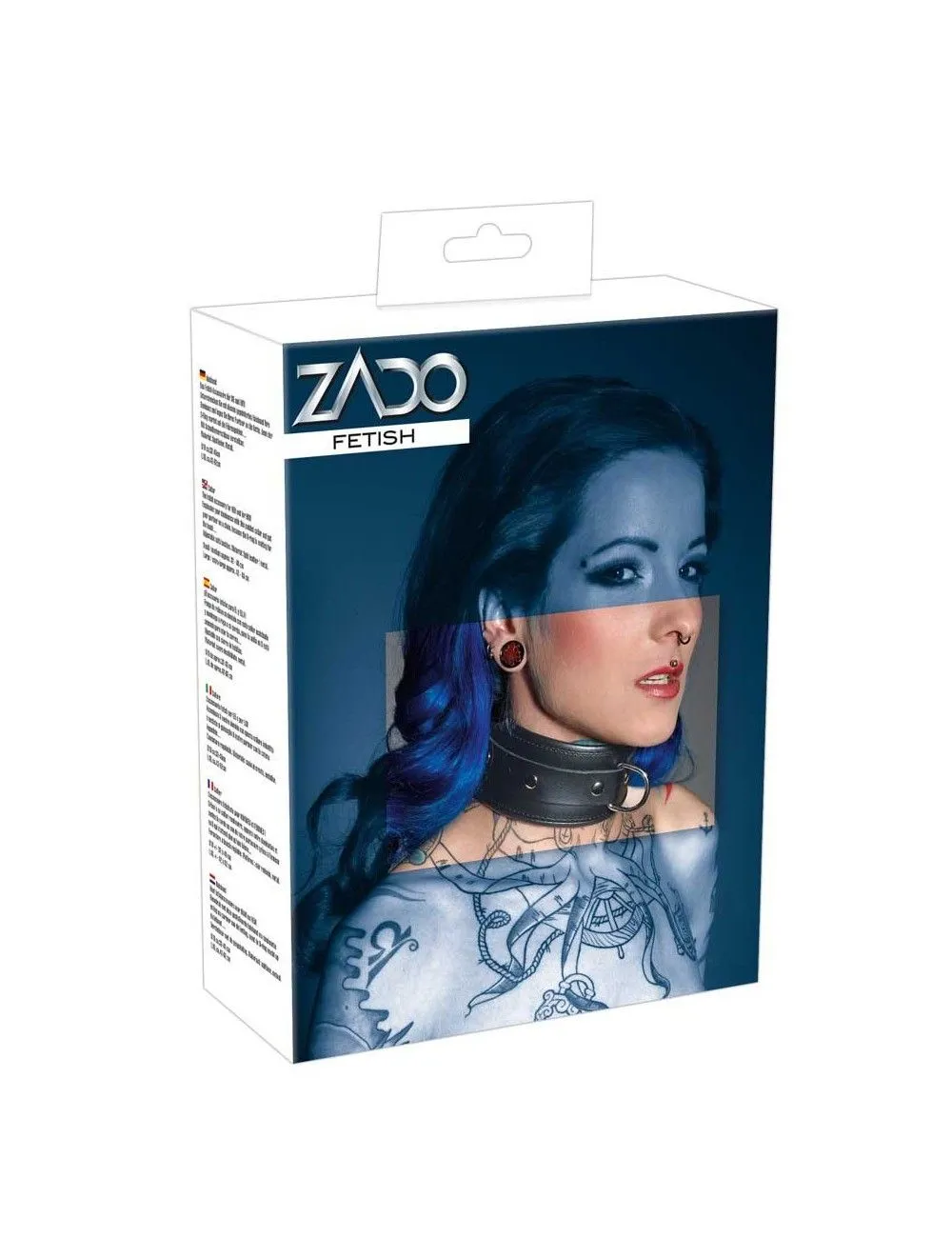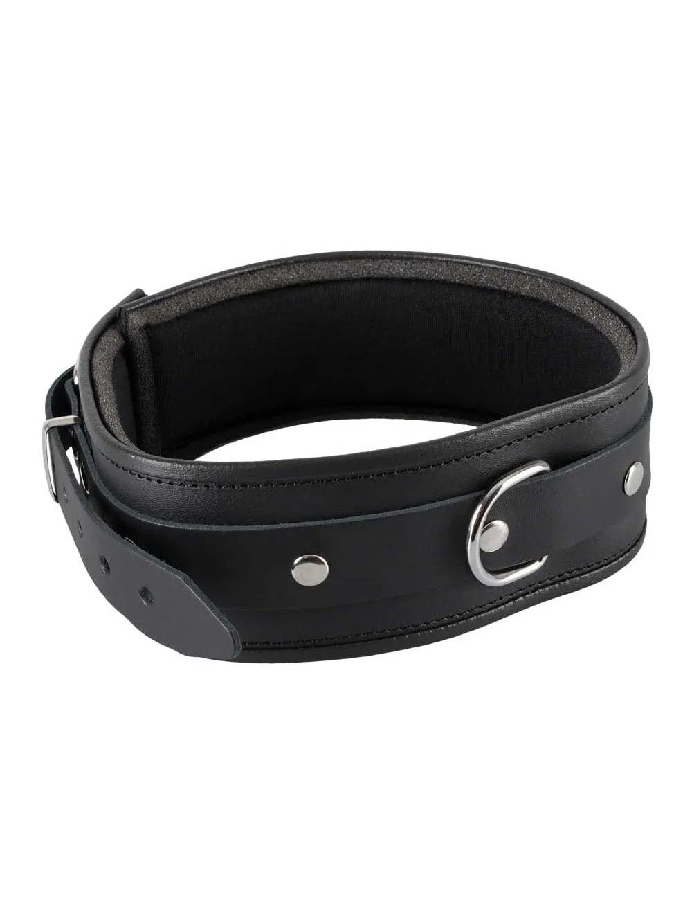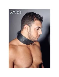 Collier Cuir Noir Rembourré et Anneau ZADO