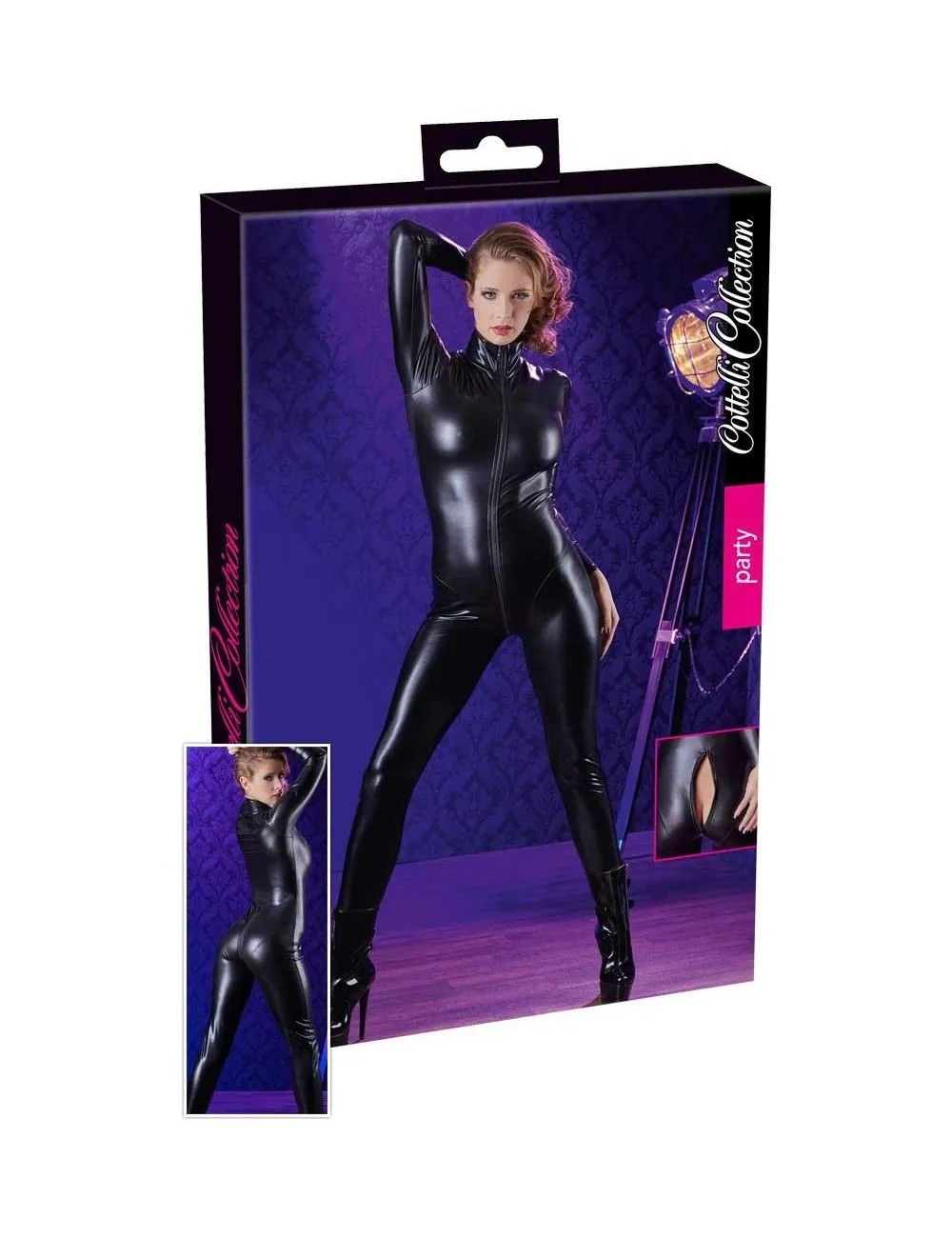 Combinaison Noir Ajustée Wet Look Zip Coquin Cottelli Collection