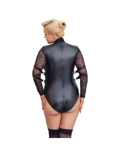 Matière aspect mat avec manches en dentelle.