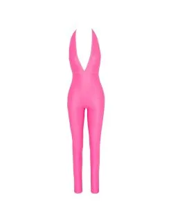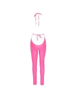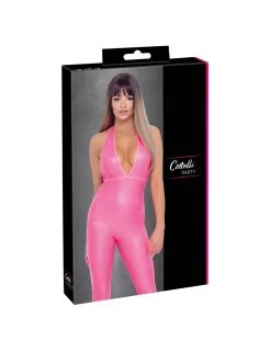 Combinaison avec un string de Cottelli en matière mate brillante rose fluo accrocheuse.