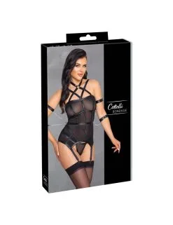 Guêpière et string de Cottelli en powernet extensible avec des détails de sangle dans un look unique.