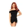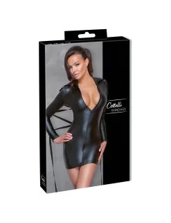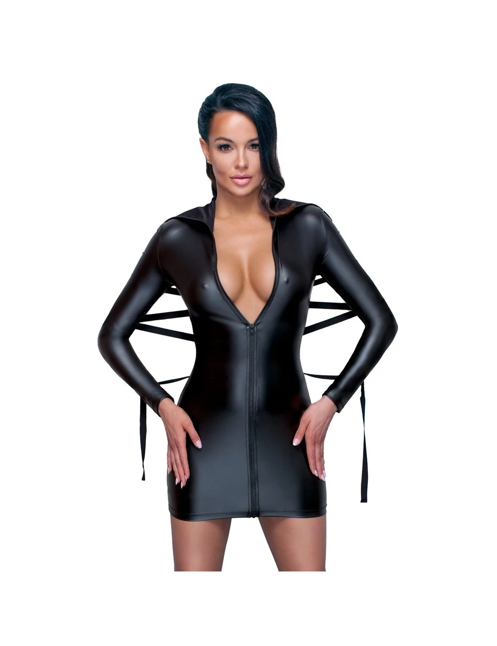 La robe est faite d’un beau matĂ©riau d’aspect noir mat.