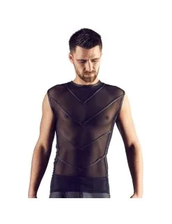 Débardeur en résille fine à l’avant et vinyle dans le dos.