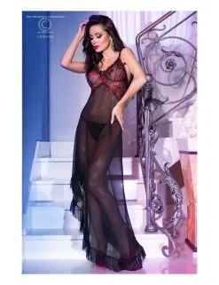 Déshabillé Tulle Noir et Dentelle Brodée Chilirose