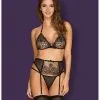 Déshabille en tulle noir avec bande en dentelle agrémentée de broderies florales rouges et d’un noeud ornemental avec strass.