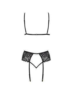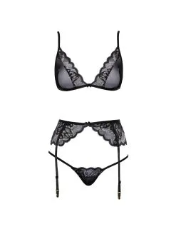 3 pièces de sensualité avec cet ensemble fin en lingerie confectionné de dentelle et paré de motifs floraux.
