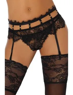 Porte jarretelles avec jarretelles réglables en longueur assorti et un string.
