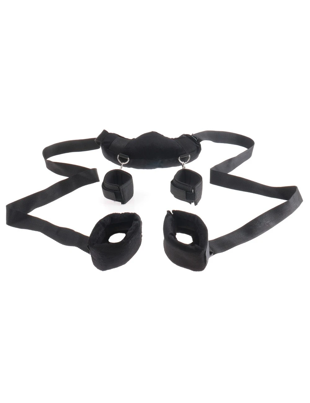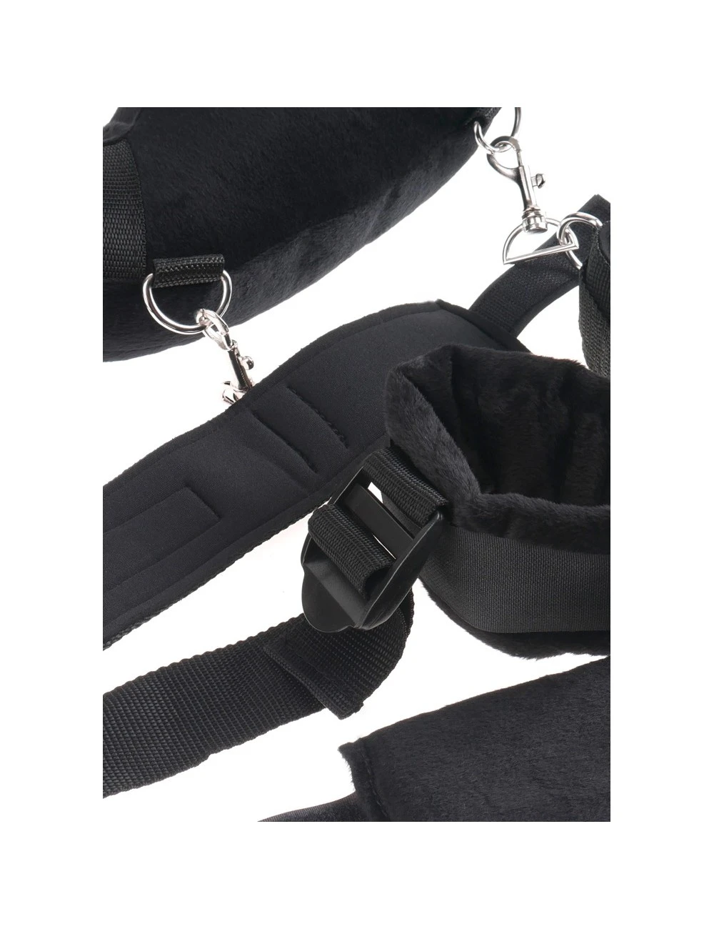 Les attaches sont confortables et rembourrées. Elles font le tour du cou, des mains et des chevilles.