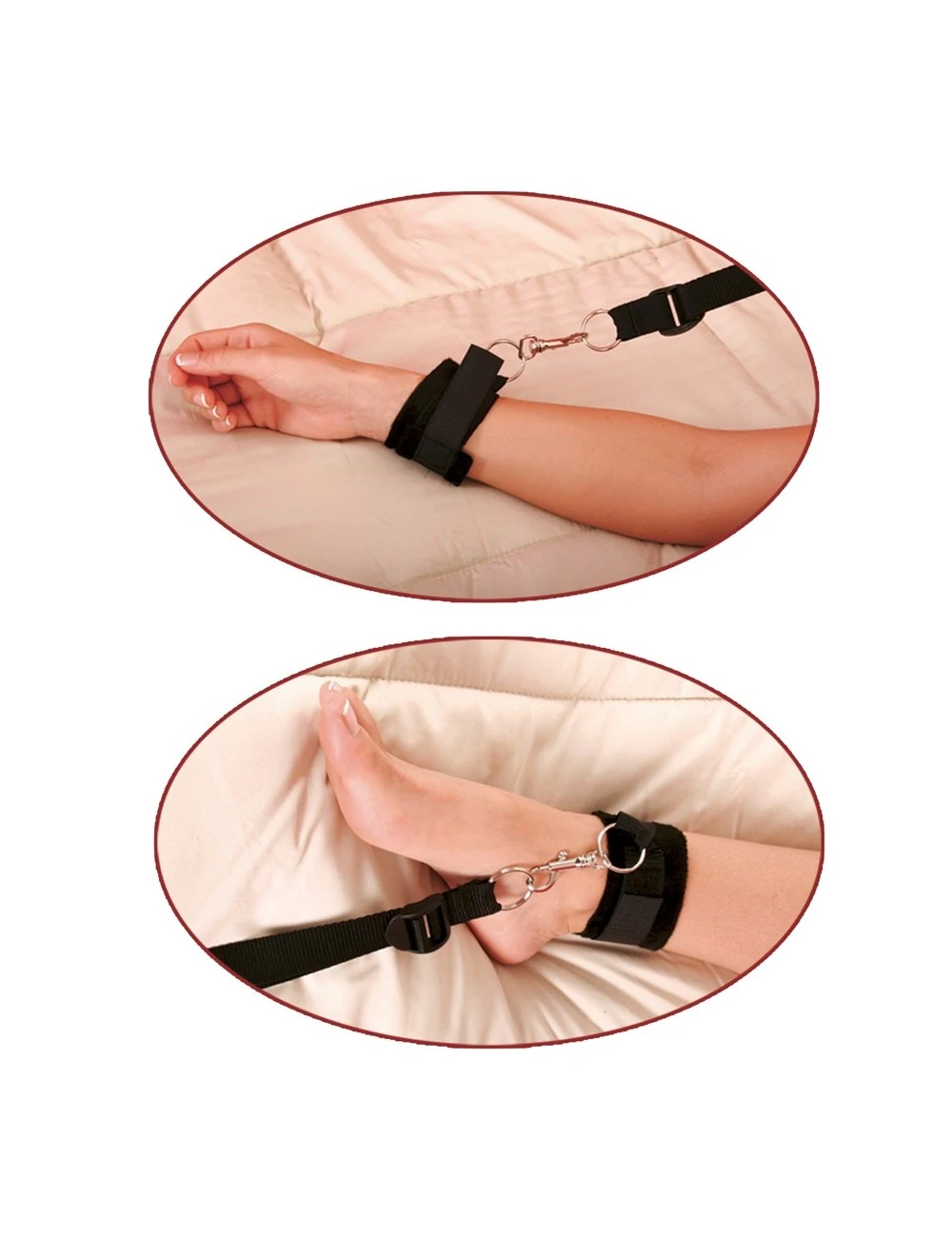 Il transforme également le lit en terrain de jeux de bondage professionnel.