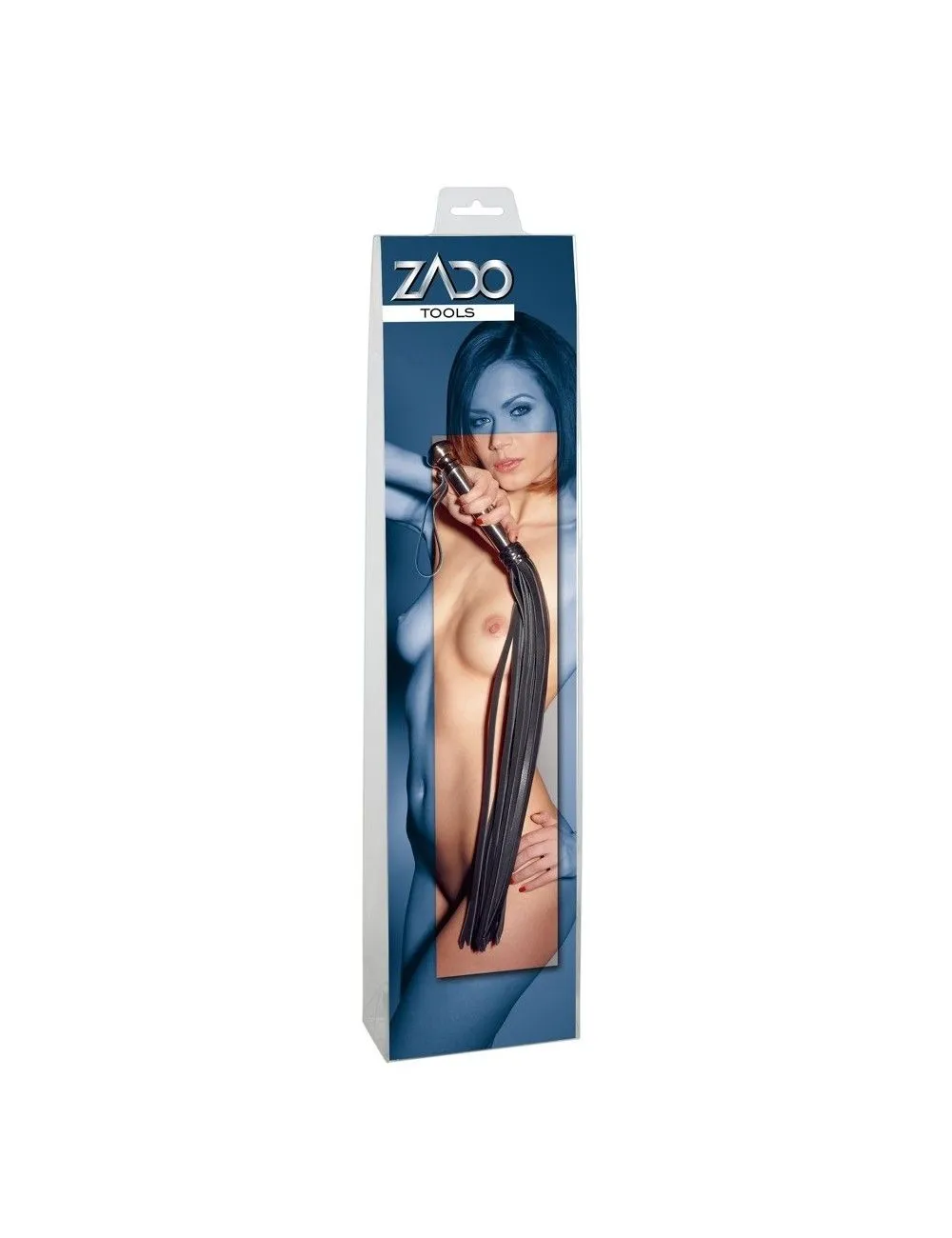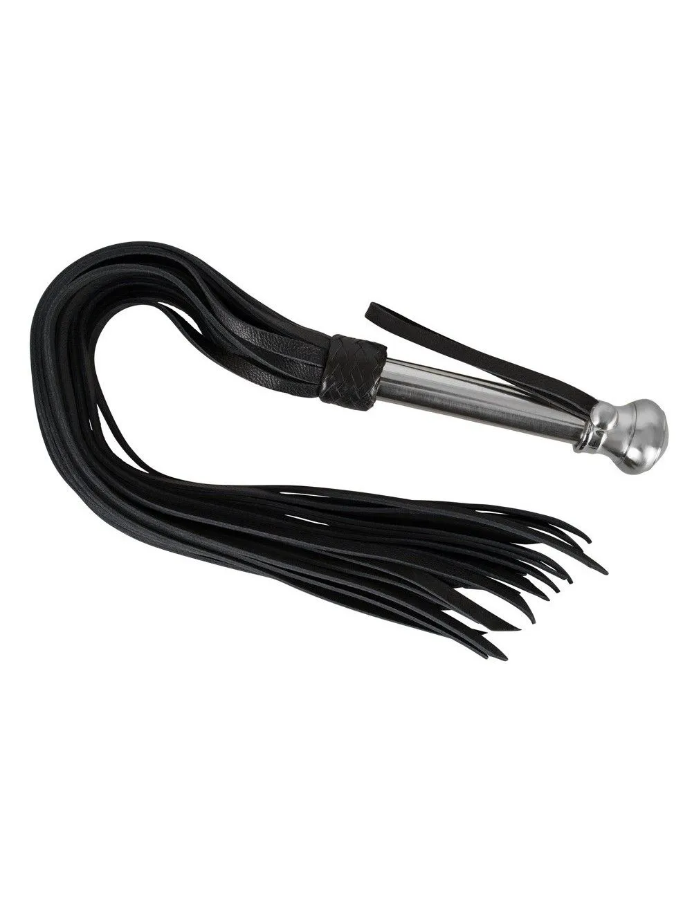 Fouet avec lanières en cuir d’une longueur de 73 cm.