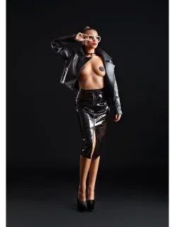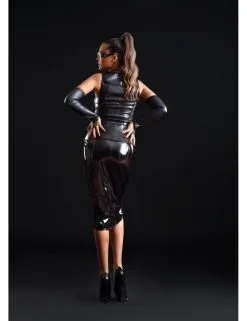Jupe longue en vinyle noir extensible coupe crayon.