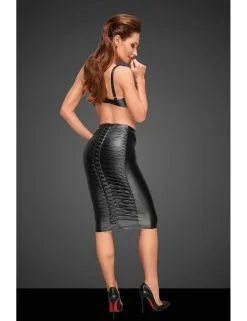 Jupe crayon longue en matière wetlook qui complétera de façon séduisante votre tenue.