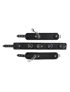 Kit attache cou et poignets en cuir fendu.