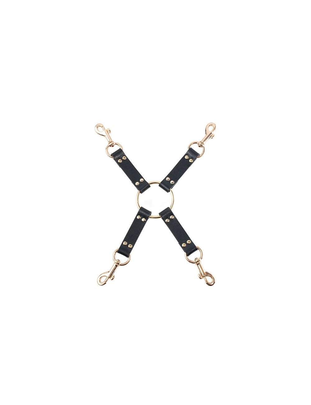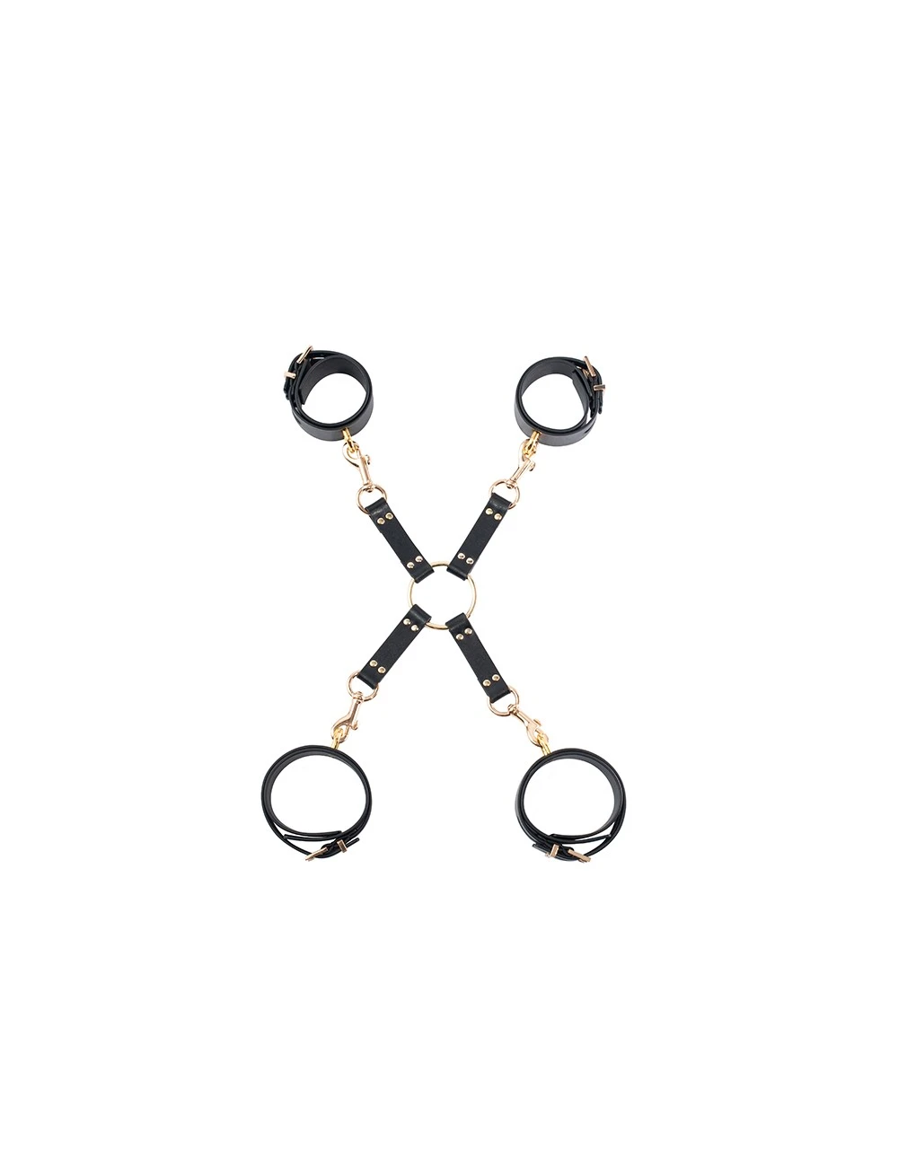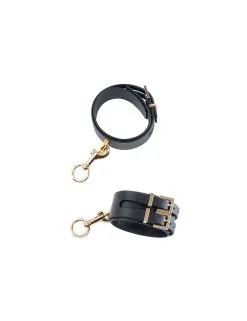 Kit d’attache de la collection Guilty Pleasure BDSM est fait de cuir vĂ©gĂ©talien avec du mĂ©tal dorĂ©.
