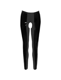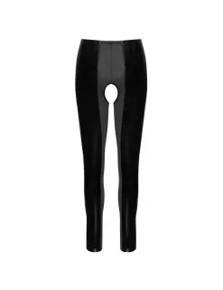 Legging en vinyle noir ouvert Ă l’entrejambe.