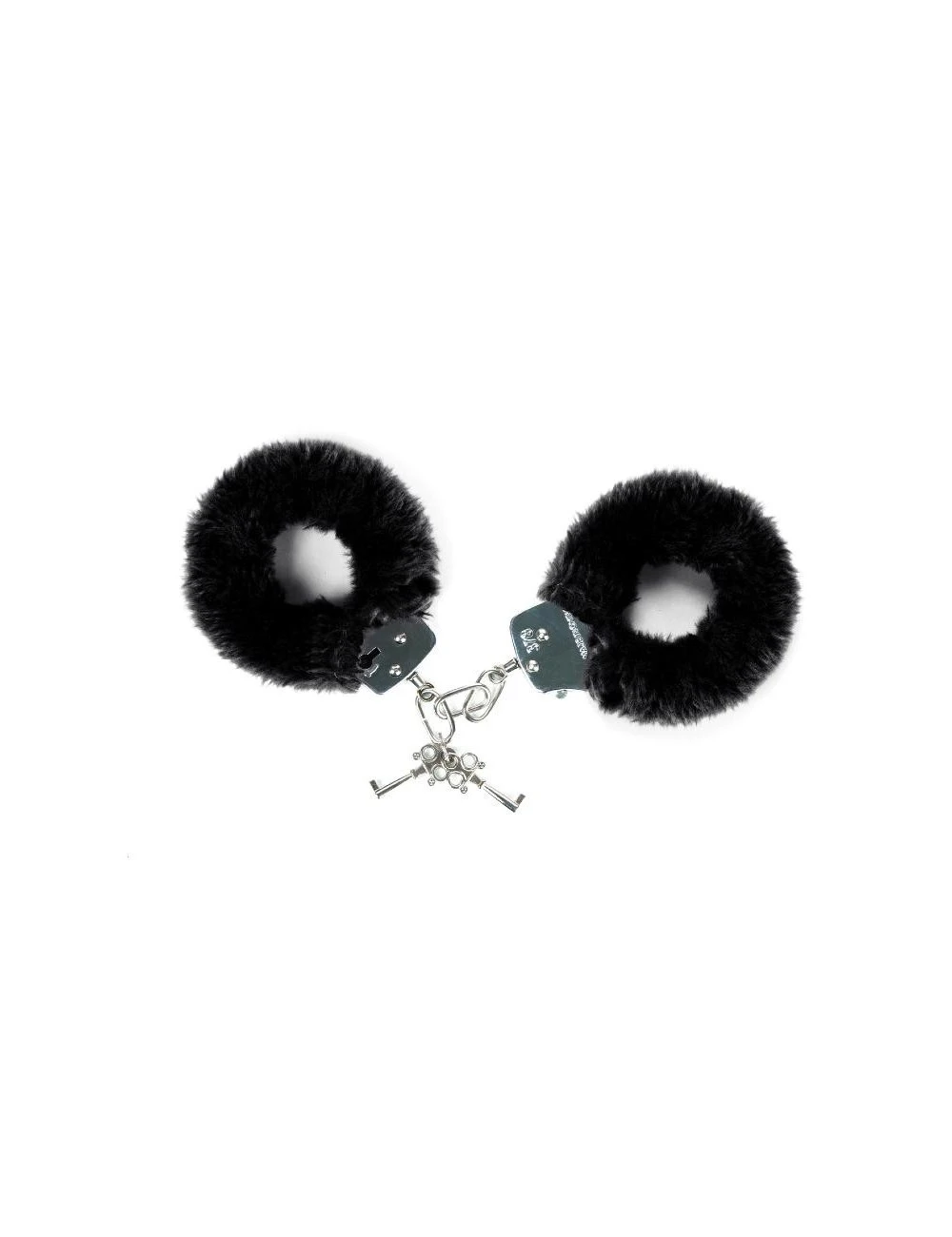 Jolie paire de menottes en métal recouvertes d’une fourrure très douce noire.